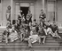 "Officers & ladies of the 7th Cavalry, Fort Abraham Lincoln, 1875. From top left: Bloody Knife, Libbie Custer, Margaret Custer Calhoun, 1st Lt Algernon Smith, 1st Lt James Calhoun. Lower Rows: 1st Lt Tom Custer, Nettie Smith, Emma Wadsworth, Herbert Swett, 2nd Lt Richard Thompson, Capt Myles Keogh, Nellie Wadsworth (rumored to have an affair with Col. Custer), Mrs Myles Moylan, Boston Custer, Capt Stephen Baker, Emily Watson, Lt. Col. George Custer."